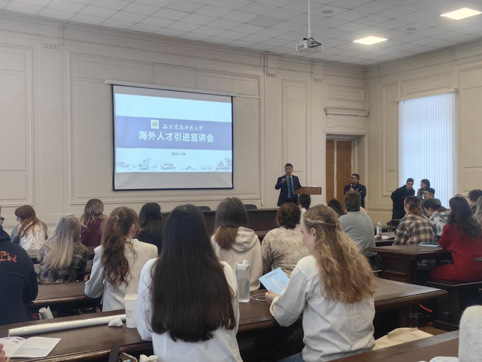 為精準(zhǔn)對接海外優(yōu)質(zhì)人才資源,助力學(xué)校人才隊伍高質(zhì)量發(fā)展,代表團(tuán)在圣彼得堡國立林業(yè)技術(shù)大學(xué)同步開展海外人才引進(jìn)專場宣講活動。副院長史承勇教授系統(tǒng)介紹了我校的辦學(xué)歷史、綜合實力、學(xué)科平臺優(yōu)勢、高層次人才引進(jìn)政策,重點展示了學(xué)院的學(xué)科優(yōu)勢、師資力量以及科研成果,誠邀與會優(yōu)秀學(xué)者加盟我校。